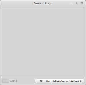 - Praktisch einfach zu verwendende Ansätze von 'Formulare in einem anderen Formular' (FormInForm) funktionieren über so genannte 'Multidocument Interfaces' wie den Steuer-Elementen TabStrip (gb.qt4) → Kapitel 12.6 und TabPanel (gb.form) → Kapitel 12.7 sowie Workspace (gb.form.mdi) → Kapitel 12.3.1 und werden in den angegebenen Kapiteln ausführlich beschrieben.