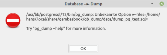 Abbildung 22.12.4: Fehlermeldung: Das Programm pg_dump ist nicht installiert