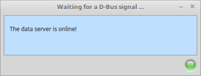 Der Server sendet beim Starten und beim Schließen des Programm-Fensters stets das D-Bus-Signal 'State', dass seinen Status über das Signal-Argument mit den Werten 'on' oder 'off' signalisiert. Der Client, der auf das Signal wartet, kann in geeigneter Weise auf den übermittelten Status reagieren.
