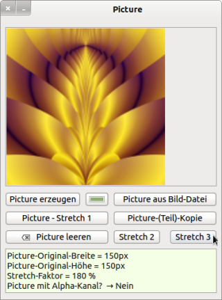 You can eliminate the disadvantage of displaying the last picture. If the picture is to be enlarged or reduced to scale, you must first convert the picture into an image, then resize it and finally convert the image back into a picture. There is no stretch method for a picture!